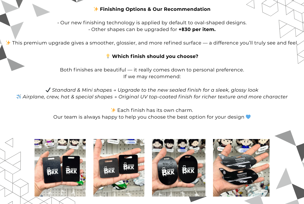 Vibrant Printing with Mimaki UV Technology: Utilizing advanced Mimaki UV printing technology, each tag boasts vibrant colors and crisp details that won't fade over time. Your customized design will stay sharp and eye-catching, flight after flight.